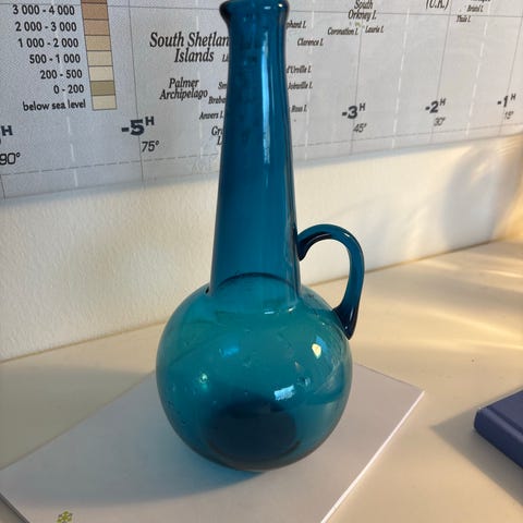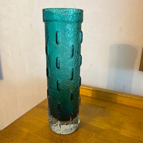 Viheä Tornado maljakko, sign. T. Alladin, Riihimäen lasi.