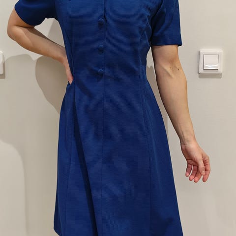 Upea sininen vintagemekko. Merkki Sora, polyesteria. Laadukas mekko, kaunis leikkaus, erinomainen syksyn juhliin.