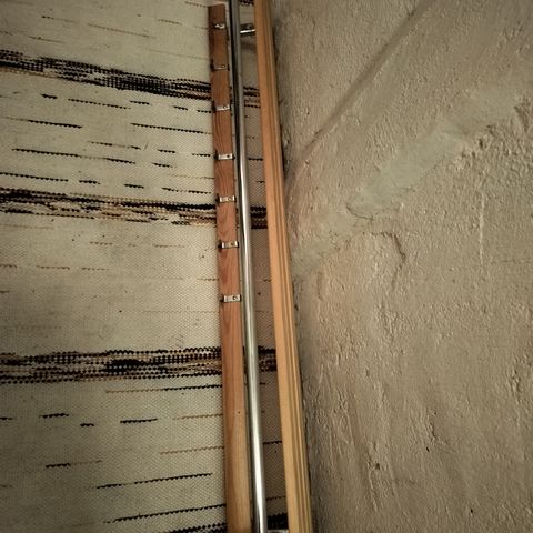 Naulakko hattuhyllyllä. Leveys 170cm ja syvyys 30cm. Puuta ja metallia. Vain Käteismaksu