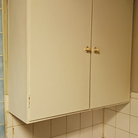 Kuvan yksittäinen yläkaappi, mitat kuvassa. Valkoinen runko, ovi kehystetty koivulistalla.