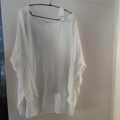 Myydään uusi naisten harmaa neule. Kiva kukkakirjoilu vasemmassa olkapäässä.