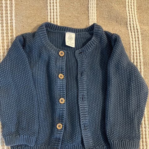 Kaunis helmineulottu puuvillaneuletakki koossa 86. Ei käytönjälkiä eikä haalistumia. Väri kaunis tummansininen.