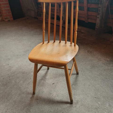Vintage - luento-/koulutuoli, Werner Westin Stockmannille 1930-luvulla suunnittelema, taivutetut koivuvanerit. Rakenteet ovat hyvässä kunnossa, alkuperäiset uraruuvit, hieman kellastunut. Tuoli tarvitsee kuitenkin pintakäsittelyn kunnostusta. Huom! Vain nouto Oulusta.