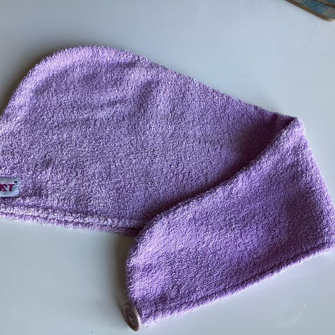 Harmaa mikrokuitu turbaani hiusten kuivatukseen suihkun jälkeen. Kuminauha antamassa joustoa.