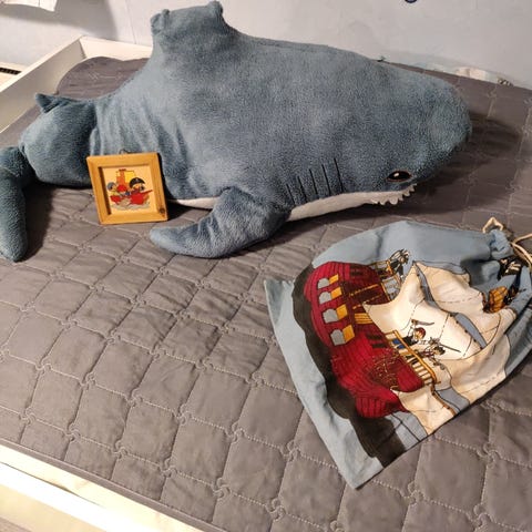 Erittäin hyväkuntoinen setti lastenhuoneessa olleita koristeita. Materiaali puuta ja metallia. Little baby kyltti, jonka koko 13x20cm. Purjevene ja kala koriste, joiden Korkeus noin 18 cm.