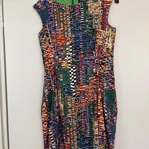 10 vuoden takainen ihanuus. Jacqueline Kennedy Onassiskin olisi kelpuuttanut tämän päälleen - henkii 60-lukua kuoseineen, lannevöineen ja hihatamppeineen. Käytetty kelpo kunto, pientä pesunukkaa pinnassa, jonka saa silittämällä siistittyä, muutoin en oikein sanomisia huomannut - en tosin käynyt suurennuslasilla läpi. Lisää kuvia tarvittaessa sovitusnuken päällä ja mittoja pyydettäessä. On aivan tavattoman tyylikäs päällä. Postitus ok + 8 eur Matkahuolto.