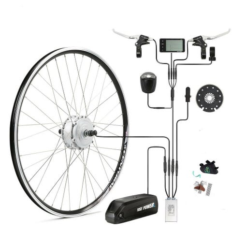 Sisältää kaiken tarvittavan polkupyörän muuttamiseen sähköpyöräksi