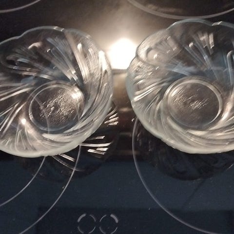 7. Lasiset tarjoiluastiat; 4 lokeroinen koko 19×29cm. 6eur, lehti kuviollinen koko:13×20,5cm. 4eur, sydän muotoinen koko: 17,5×18cm. 4eur