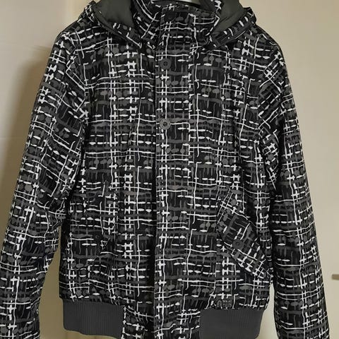 Erittäin siisti. Lukuisia taskuja, irroitettava lumilukko, ventilaatiot kainaloissa, tarrakiristys hihoissa, kiristys kahteen suuntaan hupussa, lipputasku hihassa, irroitettava huppu. Paksu ja lämmin. Kainalosta kainaloon n. 52 cm, kauluksesta helmaan n. 60 cm.