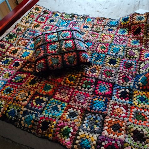 Myynnissä uusi isoäidin ruudut peitto esim. Sängyn päätyyn tai tuoliin.
