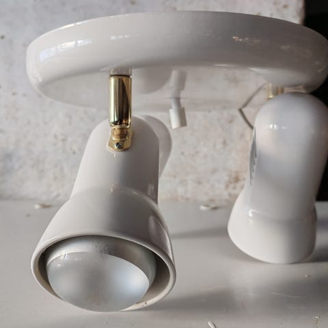 Myydään tarpeettomana. Valaisimen koko 59,5 x 33, kiinnikkeiden kanssa leveys 65 cm. Kaksi vaijeria, joilla saa kätevästi kattokoukkuihin. Noutoa suosien!