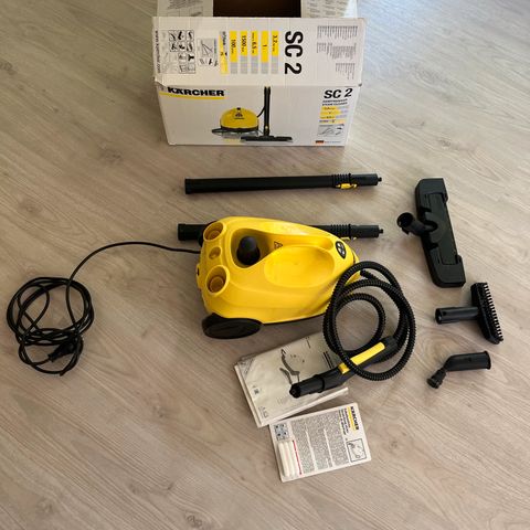 Höyrypesuri Vuorokausi 15€. Mukaan tulee lattiamopin osat, käsiharja ja muita harjaosia.