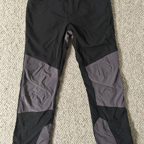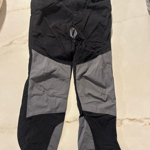 Myydään mustat housut harmailla vahvikkeilla. Ohuet ja mukavat tuulihousut sisä- ja ulkokäyttöön. Kunto hyvä.