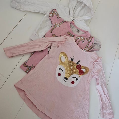 Kuvannäköiset käyttämättömät vaatteet, paita ja sukkahousut ovat kokoa 86/92 ja legginsit koko 92, vähän ryppyisiä säilytyksestä. Nouto tai posti. En tee toridiiliä.