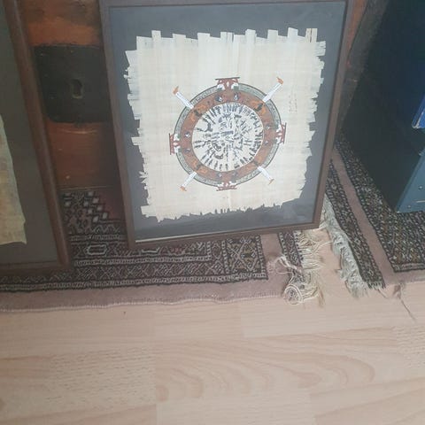 Frankin Mint - papyrus. Upea isokokoinen papyrus taulu aitoustodistuksella. Koko korkeus 60,6cm, leveys 78,2cm. Kehyksissä kulumaa.