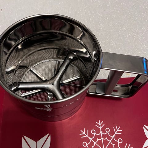 Jauhosiivilä (?). Halkaisija 17,5cm. Korkeus 9,5cm. Näyttää käyttämättömältä. Ehjä.