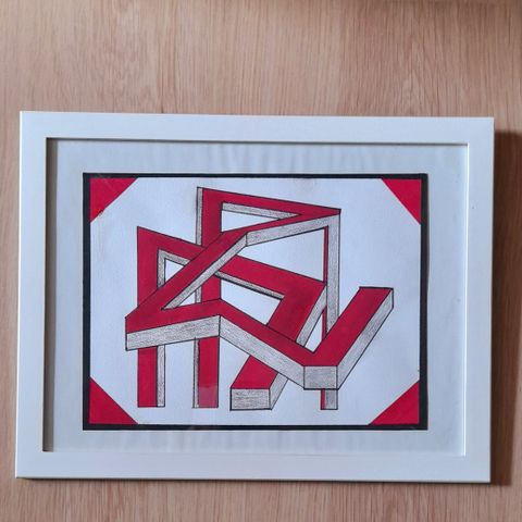Kierrätysmateriaaleista tehty taulu. Myyntiliike Klaukkalassa.