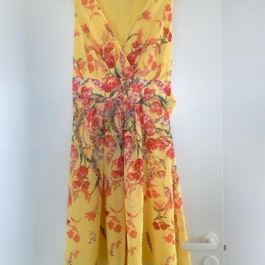 Kerran häissä pidetty juhlamekko. Uutena ostettu Sokokselta. Erittäin kaunis. Nouto Oinilasta.