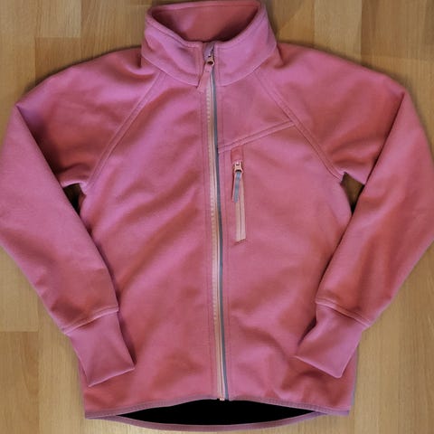Polarn o pyretin windfleece, kokomerkintä 128cm. Mielestäni sopisi jo olemaan 122-128cm kokoiselle hyvä. Hyväkuntoinen. Parissa kohtaa takissa kankaan pinnassa ”kolo”.