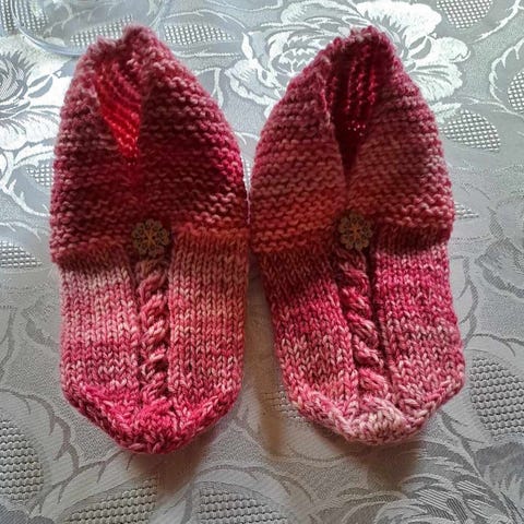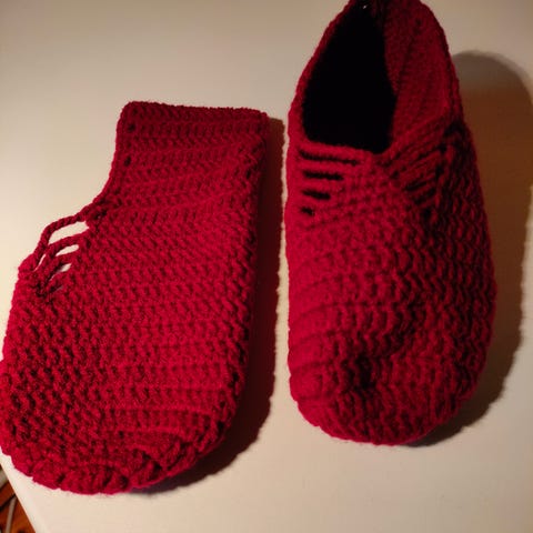 Mukavat, kauniit, kudotut tossut. Resorivarsi. Pituus 25 cm, vastaa kokoa 38/39. Pm. 7,9