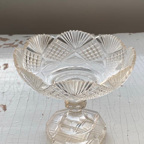 Kirkas lasi/kristalli tarjoilumalja, kulho, vintage
