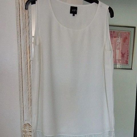 Käyttämätön sininen vuorillinen spagettiolkain toppi pitsireunalla, kokoa 38. Vetoketju sivussa.