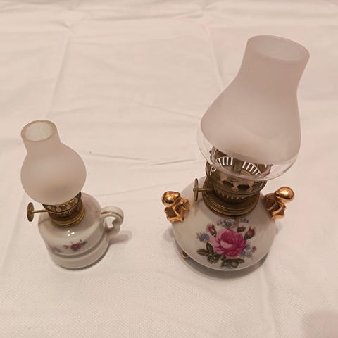 myydään pieni kaunis vintage öljylamppu. valkoinen lasi öljyastia, ja maitovalkoinen lamppulasi. korkeus 21cm, ja paino 253 g. on hyvä joulunlahja postitus tai nouto Alajärveltä