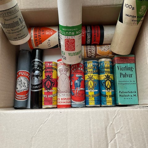 Tästä mustaruuti alan harrastajille, miksei myös muillekkin harvinainen hyväkuntoinen ruutisäiliö / täyttölaite, sekä vihtavuoren savuton ruutisäiliö sopii vaikka koristeeksi.