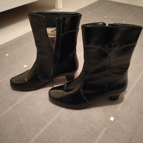 Nahkaiset nilkkurit, ei lämmintä vuorta. Vaaleanpunainen väri haalistunut, voisi halutessaan käsitellä jollain aineella. Ehyet ja muuten siistit. Hinta 15e.