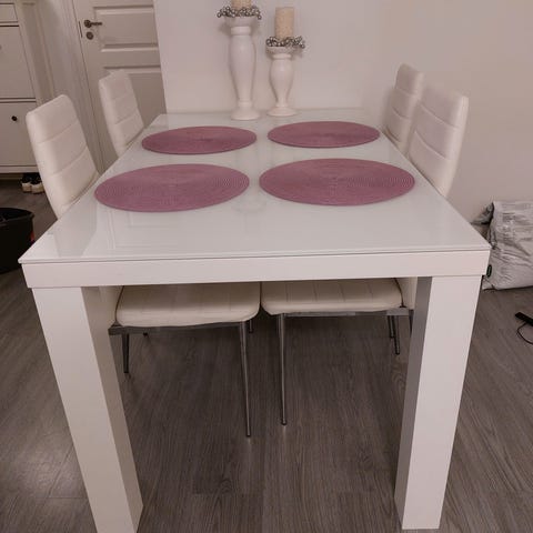 Tästä uuden veroinen ruokailuryhmä. Ollut aiemmin palaveripöytänä, mutta jäi siinä todella vähälle käytölle.