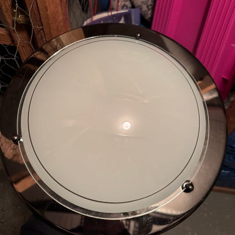 Pintahuurrettu lasinen Fragata Oy Ulvila kattoplafondi. Kaksi valonlähdettä E14 kannalla. Kuljetus onnistuu pääkaupunkiseudulle.