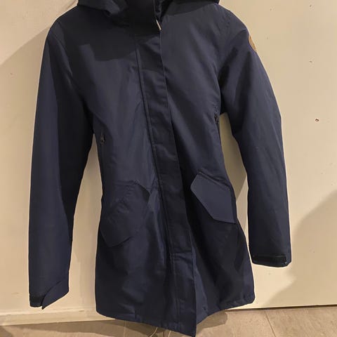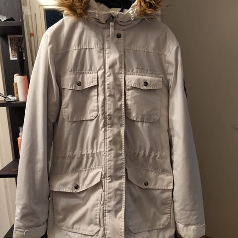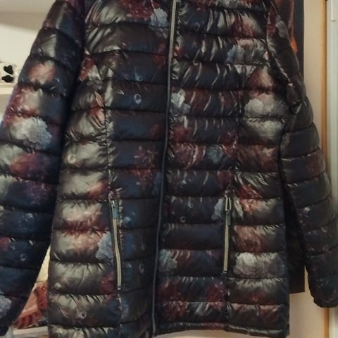 Toppatakki, jossa kevyt vanutoppaus, vetoketju ja näppärit, joista alimmaisesta puuttuu näppärin vastakappale, mutta vetoketju on pitkä, reilunkokoiset taskut päällä.