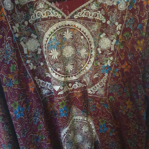 Espanjan matkalta liikkeestä ostettu kaunis keltainen mekko korkealla pitsikauluksella ja off sholder- hihoilla, jotka peittävät mahdolliset allit käsivarsilta. Laadukas mekko, jossa erillinen vuori-alusmekko. Koko vastannee 46/48 (xl-xxl). Mekko joustaa hieman. Takana vetoketju. Nilkkapituinen.
