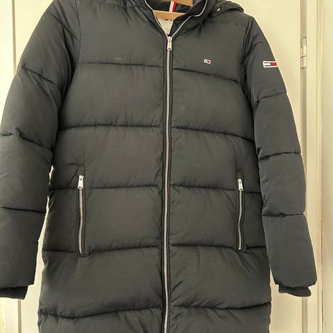 Tommy Hilfigerin musta talvitakki. Takin pinnassa kuviointia. Hupun karvakaulus irrotettavissa sekä koko huppu irrotettavissa neppareilla. Taskut toimii neppareilla.Vetoketju toimii moitteetta. Lämmin, todella siisti ja tyylikäs takki samalla kertaa. Koko M. Nouto Oulu tai pk lisätään hintaan. Postitus postin M-paketilla.