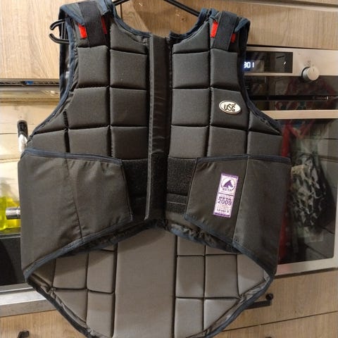 Lasten xl-kokoinen USG Flexi Body Protector level3 palaturvaliivi eteenpäin, meillä ei innostus jatkunu yhtä käyttökertaa kauempaa.