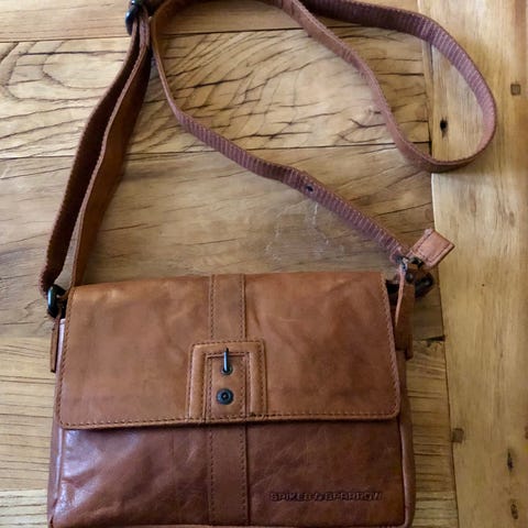 Myydään reilun kokoinen nahkainen Spike & Sparrow laukku. Lev 61 cm kork 38 syv. 21 cm. Pitkä hihna 145 cm