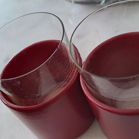 korkeus 9cm, halkaisija yläosa ulkomitta 7,5cm, tilavuus 1dl, Aarikan leima