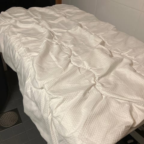 Ohut ja kevyt kaunis kuvioinen retroinen lasten peitto.Reunoissa roikkuu lankoja. Pesuhaalistumaa. Pesty 60 C.