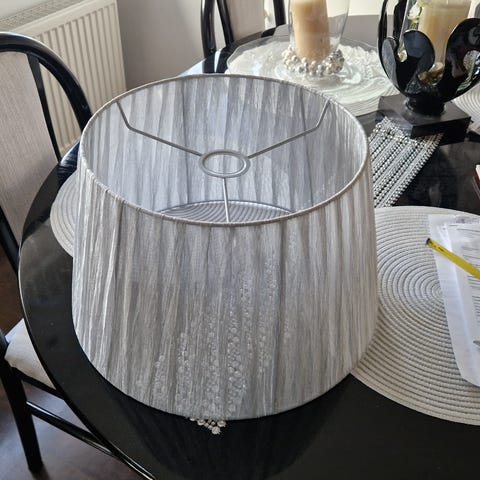 Myydään lampunvarjostin. Varjostimen alaosan halkaisija n. 45,5 cm ja korkeus n. 30 cm. Erittäin hyvässä ja siistissä kunnossa.