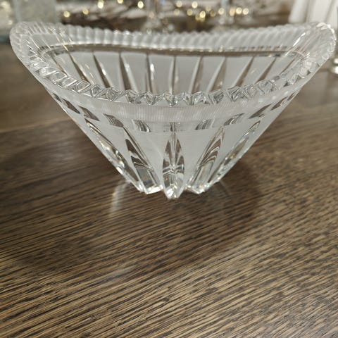 Kristallikulho. Pohjassa kirsikkakuvio. Hedelmille, pääsiäsimunille tai salaatille. Nouto, posti tai toridiili.