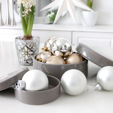 4-living, harmaa 6-kulmainen koristerasia, jonka kannessa magneettikiinnitys
