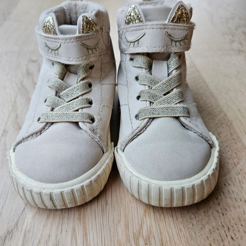 Hyväkuntoiset H&M:n vuorelliset kengät. Koko 20/21. Sisäpituus noin 13 cm. Pohjallisen nurjalla puolella hivenen rikkoutumaa koska pohjallinen olikin liimattu kiinni. Pohjallinen asettuu kenkään tästä huolimatta normaalisti. Pinta mokkamainen. Sivussa vetoketjut helpottamassa pukemista. Savuton ja eläimetön talous. Lisätietoja pyydettäessä.