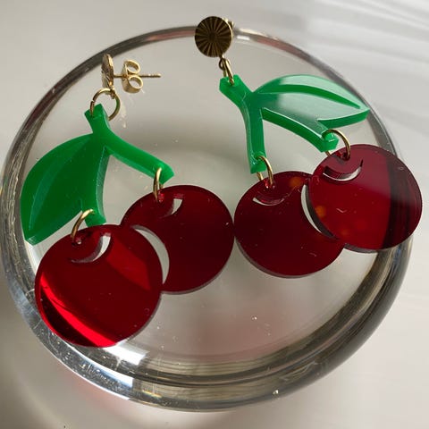 Teräs korvakorut joissa Kirsikan kukan kuva.
