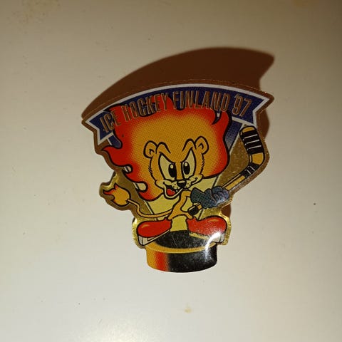 Myydään Ice Hockey Finland ´97 vetoketjupinssi sekä avaimenperä. Pinssit ovat uusia.