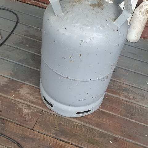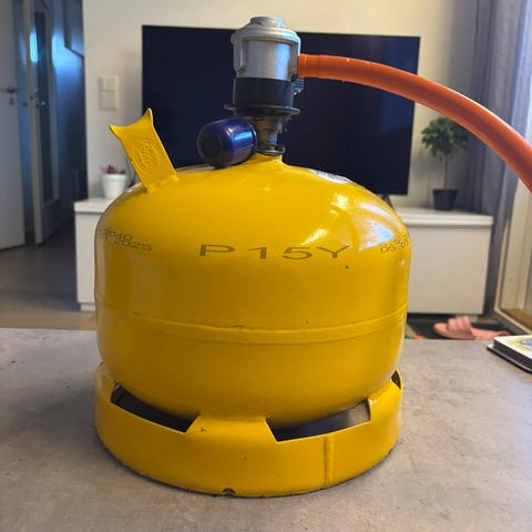 Myyntiin kaasupullo. Ei tietoa vuotaako vai ei.