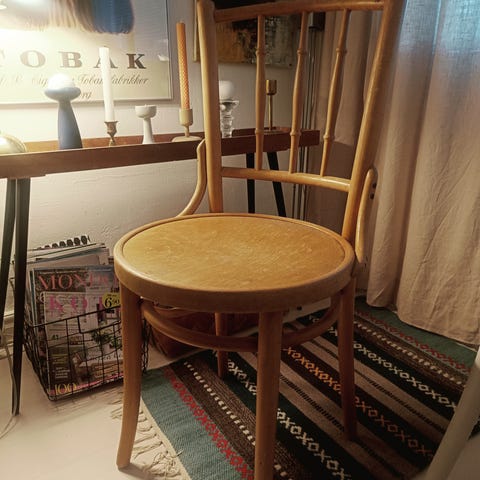 Herrastuoli, ehjä tukeva, siisti, ei kolhuja, 1900-luvun alusta. Tuolin historia tiedossa.