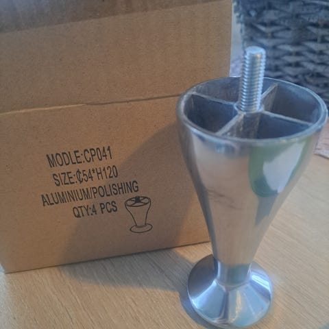 Teräksiset kalustejalat 3 kpl. Korkeus 81 cm, halkaisija 6 cm.