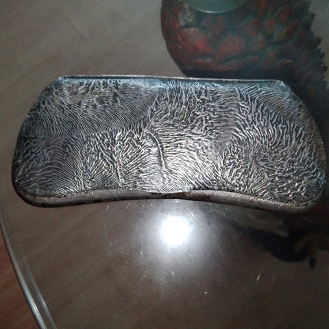 Isoäitini (1.1.1889-08.1972) alpakkainen silmälasikotelo, kaiverruksin M.V. 1.1.39