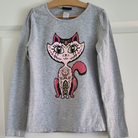 Vaaleanpunainen kissat printtipaita koko 130 cm