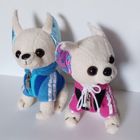 Kaksi chihua joilla irroitettava takki, korkeus noin 15 cm